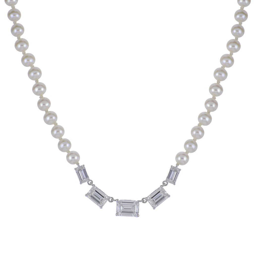 14KT White Gold Freshwater Pearl & LGD Necklace